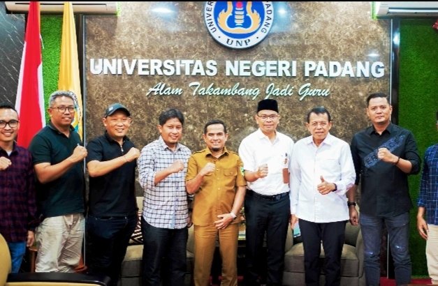 Eksposrakyat.com – Wakil Bupati Solok, H. Candra bersama Ketua KONI Kabupaten Solok, Doni Zulkifli serta jajaran pengurus KONI, melakukan kunjungan resmi ke Rektorat Universitas Negeri Padang (UNP) dan berkomunikasi langsung dengan Rektor UNP Dr. Ir. Krismadinata, S.T., M.T dan Prof. Ganefri, Selasa (09/09/2025) di Kampus UNP, Air Tawar, Kota Padang, Sumatra Barat.